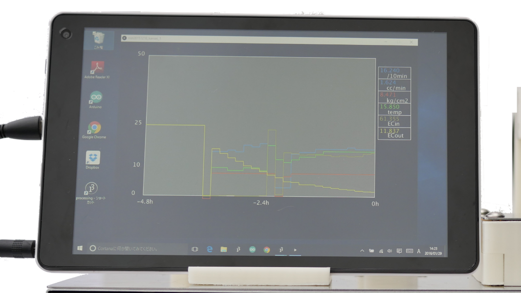 平膜試験のための計測器「Water Recorder」は
